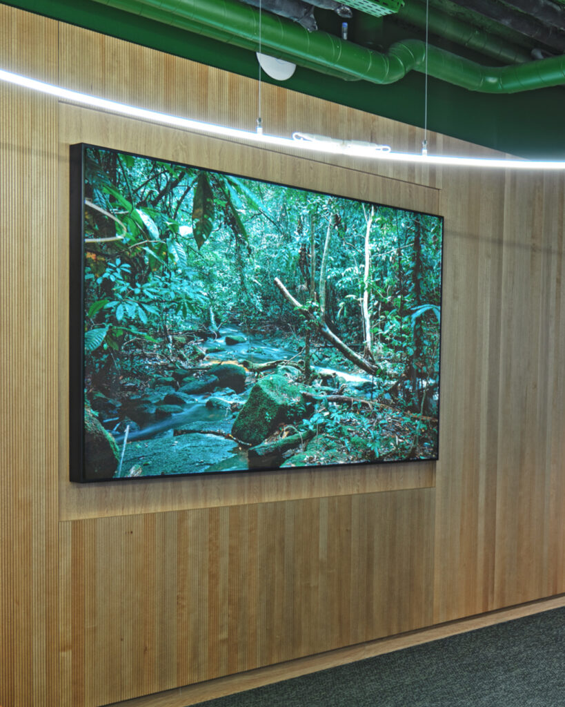 Tirage Duratrans et contrecollage cadre acier laqué noir, diffusant et fond Lumière LED